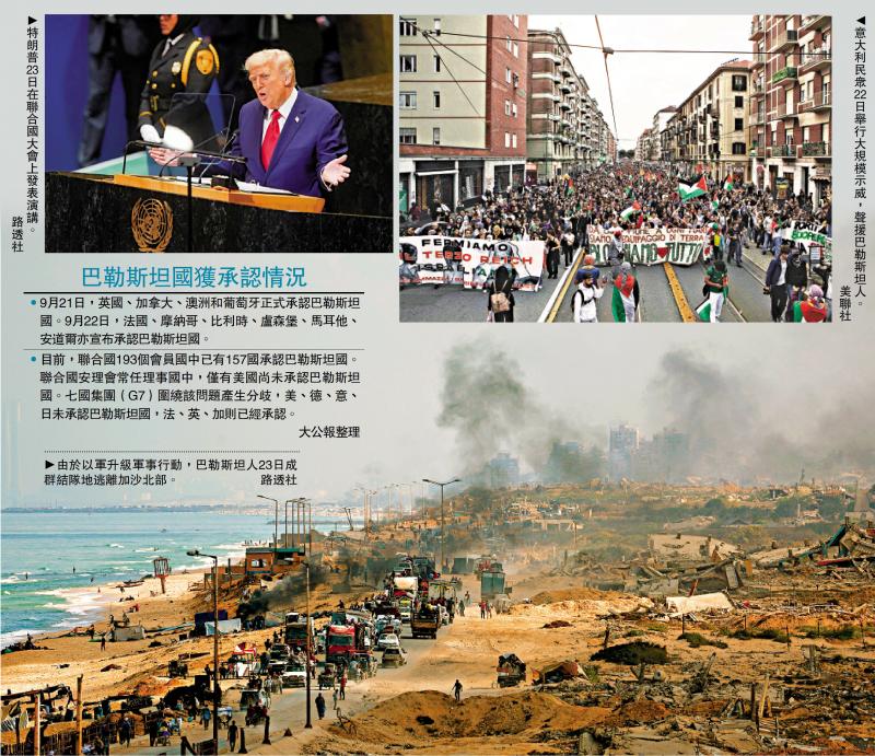 照片:认识巴勒斯坦国家。在第23个当地时间,美国总统在联合国第80届大会上发表演讲,批评选择承认巴勒斯坦国的国家。在过去的两天中,包括英国,法国和加拿大在内的10个国家宣布对巴勒斯坦州的认可,这标志着美国和以色列的进一步分离。欧洲理事会主席哥斯达黎加敦促以色列停止加沙地带上的大屠杀,并说:“以色列必须了解他们正在失去来自世界各地的朋友。”土耳其总统埃尔多安(Erdogan)指出,特朗普为自己可以结束俄罗斯 - 乌克兰冲突和巴勒斯坦 - 以色列的冲突而感到自豪,但他们都没有得到实现。 [Ta Kung Pao News] 23岁,特朗普在返回Towhite House后向联合国大会发表了他的第一次演讲。一旦他登上舞台,他说传送器被打破了,并在纸上进行了演讲开始讲话。他首先夸耀自己的“成就”,包括“历史贸易协定”,北约国家成员增加军事支出的承诺,而这并不是说他“结束七场战争”的主张,而鄙视联合国,却没有试图帮助全球冲突。”说到以色列 - 巴勒斯坦人的竞争,特朗普提到“许多强大的国家”认识到巴勒斯坦国,并声称这是“对巴勒斯坦伊斯兰抵抗运动的祝福的回报,他与俄罗斯总统普京有着良好的关系。他还谈到了移民,对毒品犯罪的抵抗和其他问题。Ontries。他告诉联合国会议代表,是时候结束“失败的开放边境”,“您的国家将要下地狱”。特朗普的讲话持续了大约一个小时,规定了15分钟以上。白宫说,特朗普将在23岁时与阿拉伯和伊斯兰国家的领导人会面,并建议在加沙结束战争的计划。特朗普期待该地区的阿克特里斯(Acountries)将在以色列从加沙(Gaza)恢复部队后,将派遣部队维持到达。印度尼西亚将参加会议的印尼总统普拉博沃(Prabowo)表示,它愿意将维持和平部队派往加沙。据报道,该计划不是以色列的草案,但内塔尼亚胡总理意识到了细节。根据美国媒体的报道,哈马斯起草了给特朗普的一封信,建议特朗普保证在加沙地点停留60天,以换取立即释放其余48名受约束人员的一半。这封信将在本周晚些时候给特朗普。团结D州欠联合国超过234亿届会员费。美国媒体指出,自今年1月返回白宫以来,特朗普一直在批评联合国,几乎停止在联合国成员的PBE支付P费。目前,美国的欠款超过30亿美元(约合234亿美元),在2025年将支付超过8.2亿美元的常规预算分配,以及近年来债务和无偿和平资金。不仅如此,特朗普连续“也退出了该小组”,导致美国退出人权委员会,世界卫生组织和联合国教科文组织。这严重影响了国际合作。在巴勒斯坦和以色列的问题中,特朗普政府支持以色列没有任何底线的以色列,并反对国际社会。在第22届法国举行的“两国计划”实施的高级国际会议上许多其他国家宣布承认巴勒斯坦国家。由于政府拒绝特朗普签发签证,因此巴勒斯坦总统阿巴斯只能通过视频链接参加会议。他呼吁尚未确定巴勒斯坦国尽快采取行动的国家,并呼吁各方支持巴勒斯坦作为联合国的正式成员,并呼吁以色列坐在谈判桌上并结束血腥的冲突。 193个联合国成员国中有157个确定了巴勒斯坦国家。在联合国安理会的常任成员中,美国只有一个拒绝承认巴勒斯坦州。埃尔多安(Erdogan)在22日直言不讳地说,以色列在加沙(Gaza)造成了“种族灭绝”。他还说,特朗普没有履行他的诺言,即结束与巴基斯坦 - 以色列和俄罗斯 - 乌克兰冲突的冲突。格里菲斯(Griffith)是联合国人道主义著作的前负责人,他说认识到巴勒斯坦国家很重要,但我T不能口头,需要采取更多行动。西班牙政府正式批准了桑切斯总理桑切斯(Sanchez)综合武器的总理,并于23岁为以色列批准,并表示希望这一举动将在众议院得到支持。以色列在23岁时继续轰炸加沙,巴勒斯坦平民对停止的希望表示怀疑。加沙居民艾尔·亚齐吉(Al Yazigi)听到许多西方国家确定了巴勒斯坦州的消息,逃到了加沙中央海岸的以色列大火。他问记者:“国家(巴勒斯坦)在哪里?在街上吗?还是在帐篷里?” (综合报告)